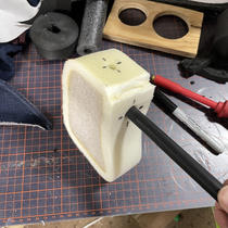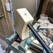 Testing out a method to build a shield-pulling axe with a wooden block.