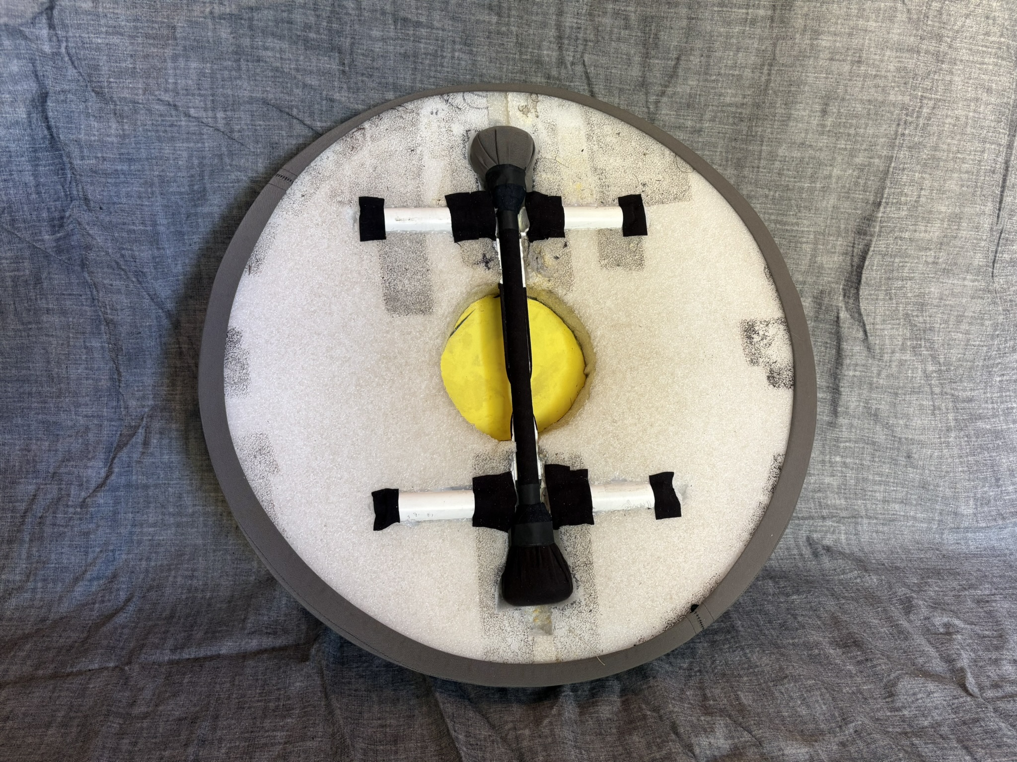 A half-circle PVC handle allows a specially-made dagger to fit in and be removed easily with the thumb and fore-finger.